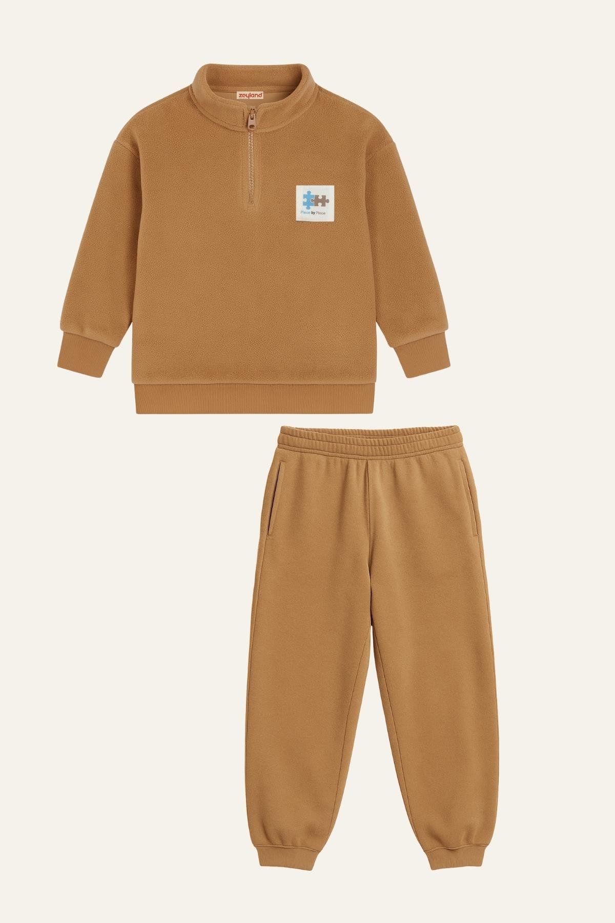 Erkek Çocuk Kapşonlu Fermuarlı Polar İkili Takım - Kahverengi (262Z3ULG71)