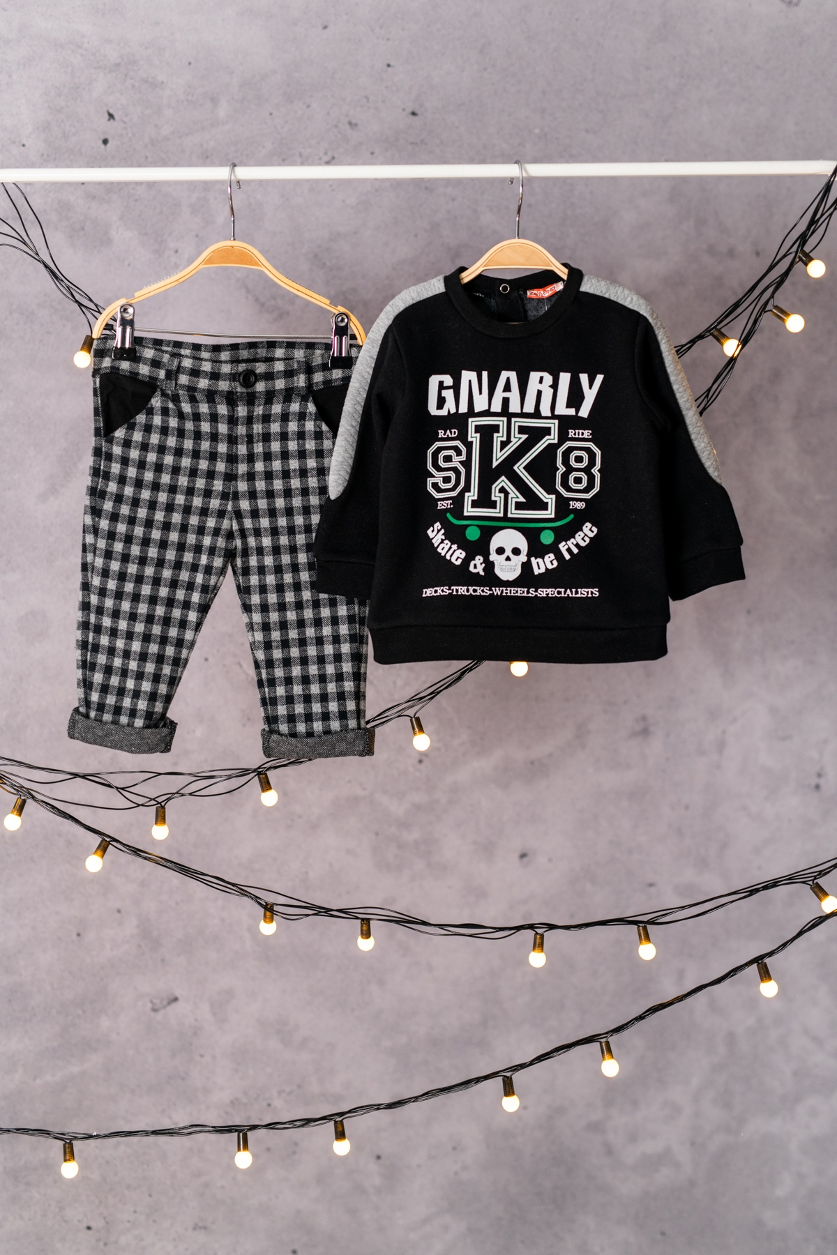 Erkek Bebek Kapitone Parçalı Sweatshirt ve Kaşe Pantolon Takım (6ay-4yaş) (82Z1HCL71)
