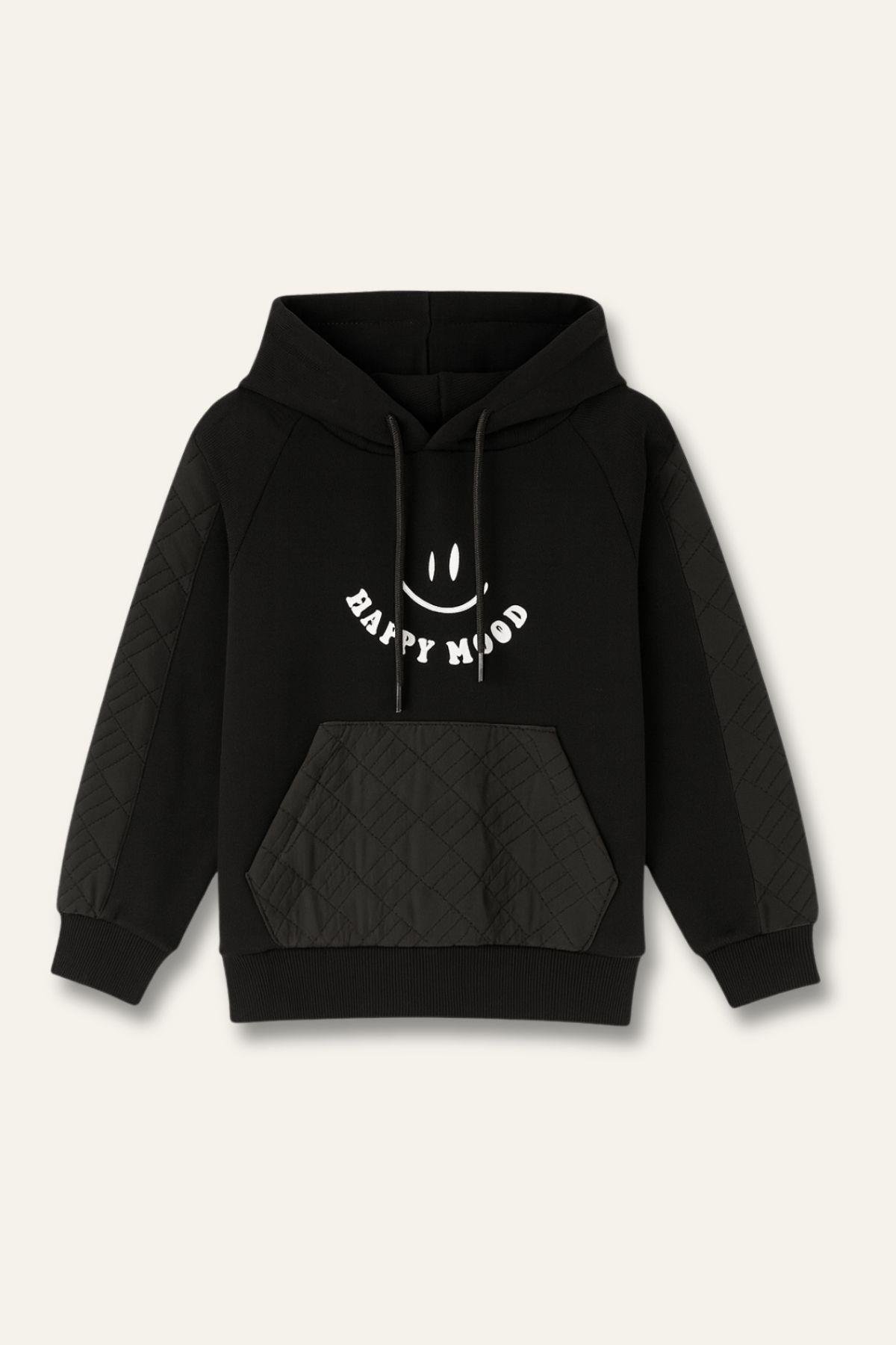 Kız Çocuk Reglan Kollu Baskı Detaylı Kapitoneli Sweatshirt - Siyah